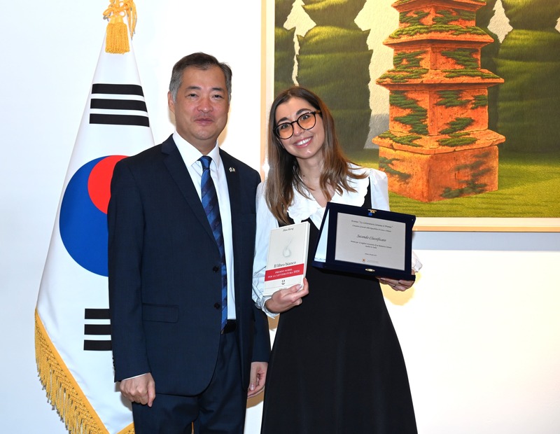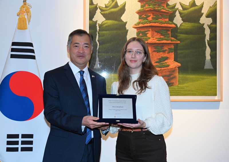 총영사관은 2025 한-이탈리아 상호 문화 교류의 해를 맞아 개설 운영중인 한국문학 정보포털 '리브리 코레아(www.libricorea.it)' 이용자들을 대상으로 한국 문학 감상평 공모전(La letteratura coreana ti premia!)을 개최하고, 12.16(화) 총영사관에 입상자들을 초청하여 시상식을 진행하였습니다.